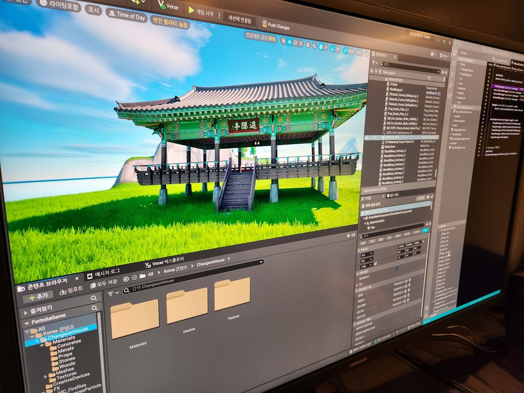 | ▲ UEFN에서 문화재 애셋을 불러와 편집하는 모습 [촬영 김주환] |