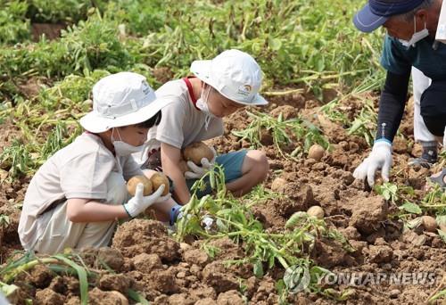 | ▲ Children collect potatoes from a farm in North Jeolla Province on June 21, 2022, during an experience event organized by the Rural Development Administration, in this photo provided by the administration. (PHOTO NOT FOR SALE) (Yonhap) |