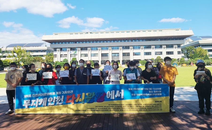 25개 시민사회단체가 참여한 인천퀴어문화축제 조직위원회는 19일 인천시청 앞에서 기자회견을 열고 제5회 인천퀴어문화축제 개최 날짜를 10월 15일로 확정했다고 밝혔다.