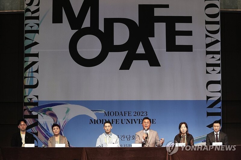 | ▲ 제42회 국제현대무용제 기자간담회 (서울=연합뉴스) 강민지 기자 = 15일 서울 중구 더플라자호텔에서 열린 제42회 국제현대무용제(MODAFE 2023) 기자간담회에서 이해준 조직위원장(왼쪽 네번째)이 취재진의 질문에 답하고 있다. 2023.9.15 mjkang@yna.co.kr |