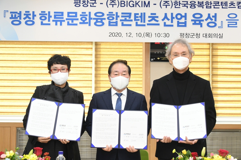 (평창=연합뉴스) 김영인 기자 = 강원 평창군은 10일 국내 대표 문화공연 기획사 ㈜BIG KIM 및 콘텐츠 기획 전문사 ㈜한국융복합콘텐츠컴퍼니와 업무협약을 체결했다.