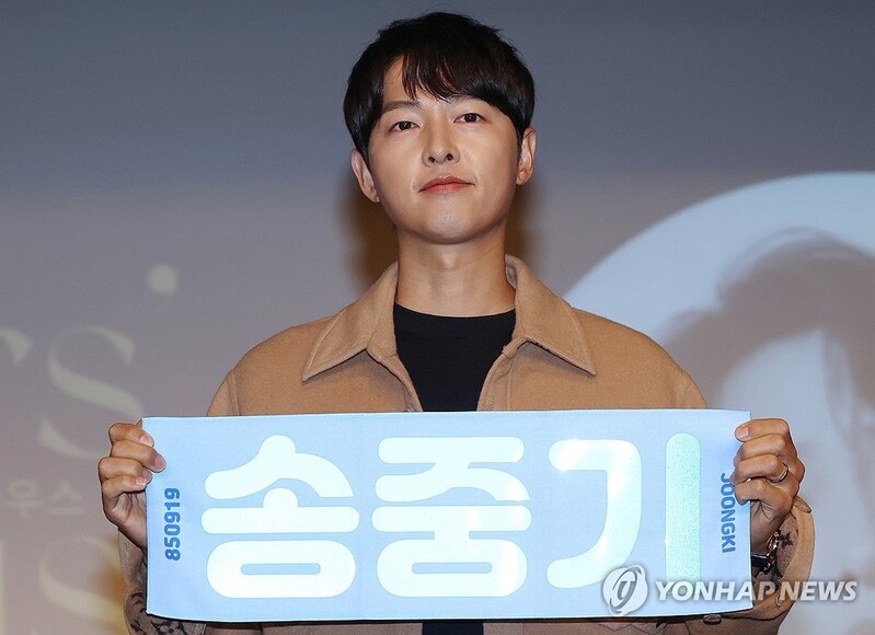 | ▲ 팬에게 받은 '송중기' (부산=연합뉴스) 이재희 기자 = 부산국제영화제(BIFF) 개막 사흘째인 6일 오후 부산 해운대구 KNN시어터에서 열린 '액터스 하우스:송중기' 행사에서 배우 송중기가 팬에게 받은 플래카드를 들고 있다. 2023.10.6 scape@yna.co.kr |