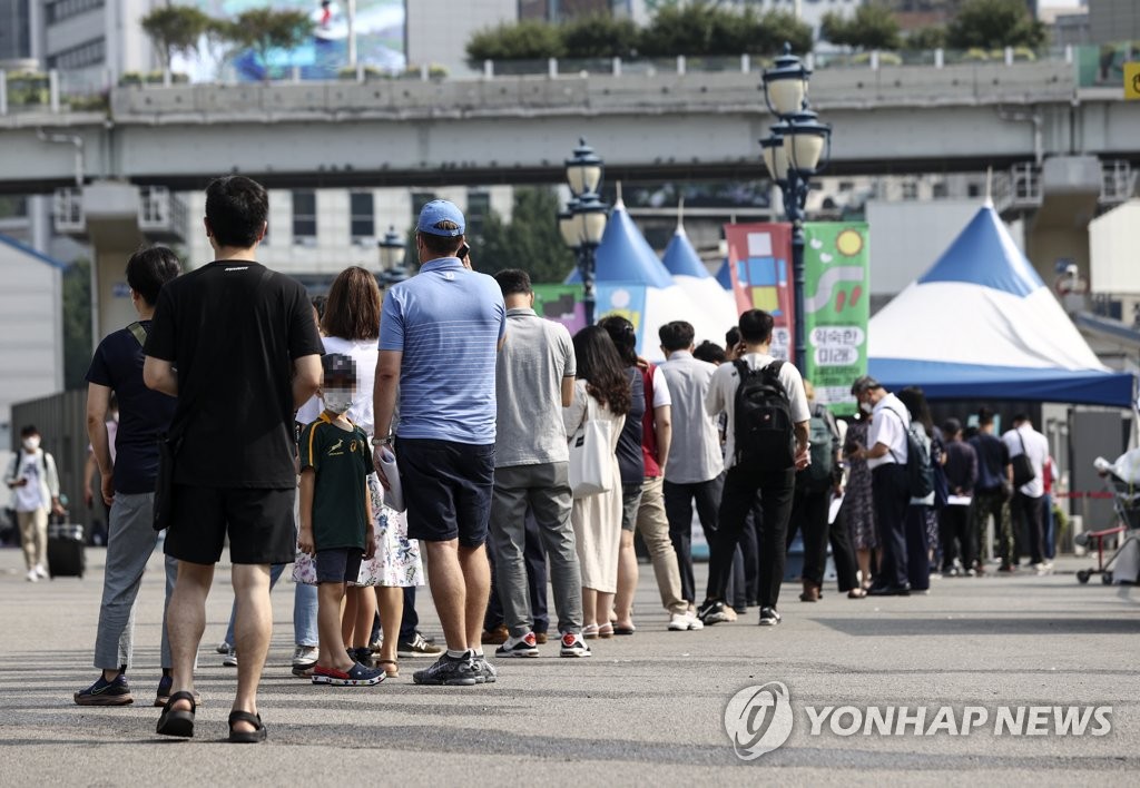 | ▲ People stand in line to take coronavirus tests at a screening clinic in front of Seoul Station on July 1, 2021. (Yonhap) |