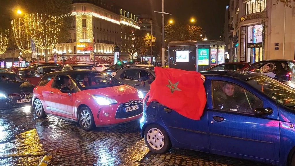 | ▲ 샹젤리제 거리에서 승리를 자축하는 모로코 축구 팬들 (파리=연합뉴스) 현혜란 특파원 = 모로코가 27일(현지시간) 2022 국제축구연맹(FIFA) 카타르 월드컵 F조 조별리그 2차전에서 벨기에를 2대 0으로 꺾자 승리를 자축하려는 모로코 축구 팬들로 프랑스 파리 샹젤리제 거리가 밤늦게까지 소란스러웠다. 2022.11.28 runran@yna.co.kr |