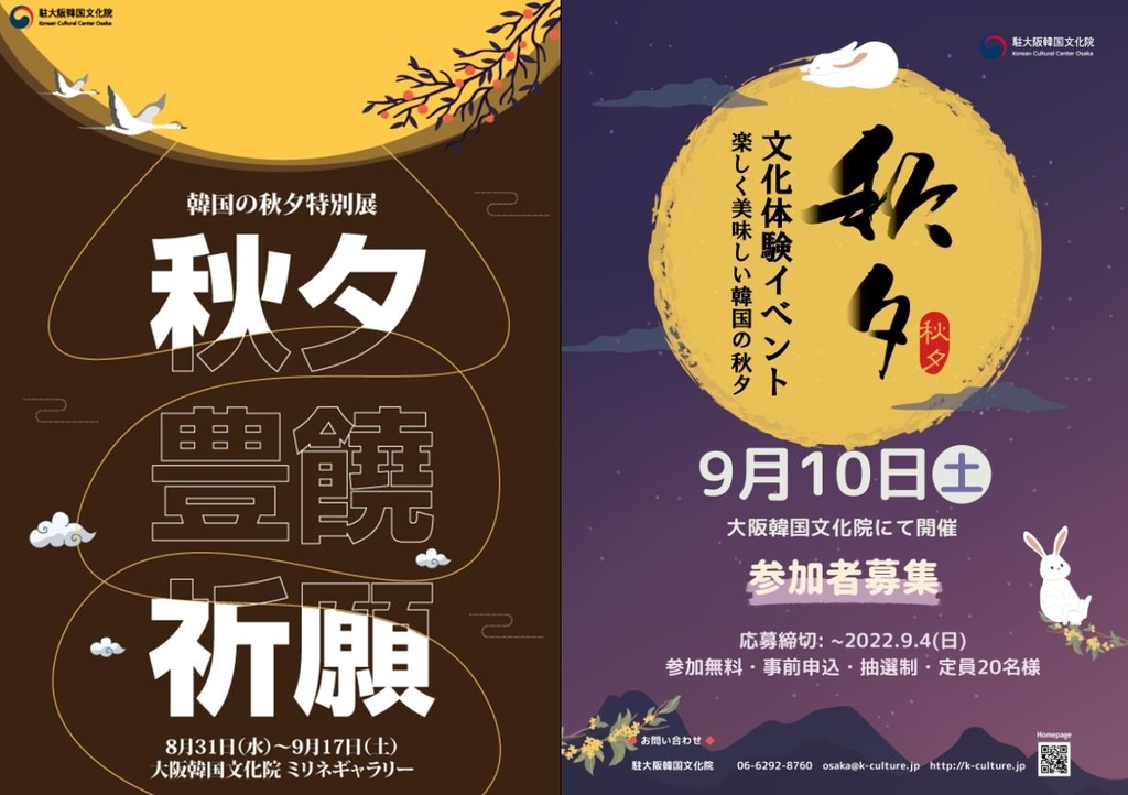 이날부터 9월 17일까지는 오사카시 문화원 갤러리에서 '추석, 풍요, 기원'이라는 제목으로 추석 관련 사료(史料), 사진, 영상과 도자기·공예·회화 등 미술품 전시회를 개최한다.
