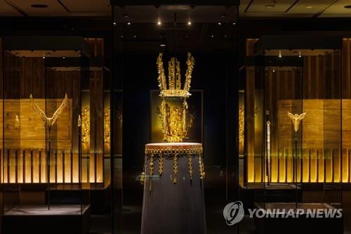 | ▲ Golden artifacts excavated from the Cheonma Tomb, a royal tomb from the Silla Kingdom (B.C. 57-A.D. 935), about 50 years ago are on display during a special exhibition at the Gyeongju National Museum in Gyeongju, 277 kilometers southeast of Seoul, in this photo provided by the museum. (PHOTO NOT FOR SALE) (Yonhap) |