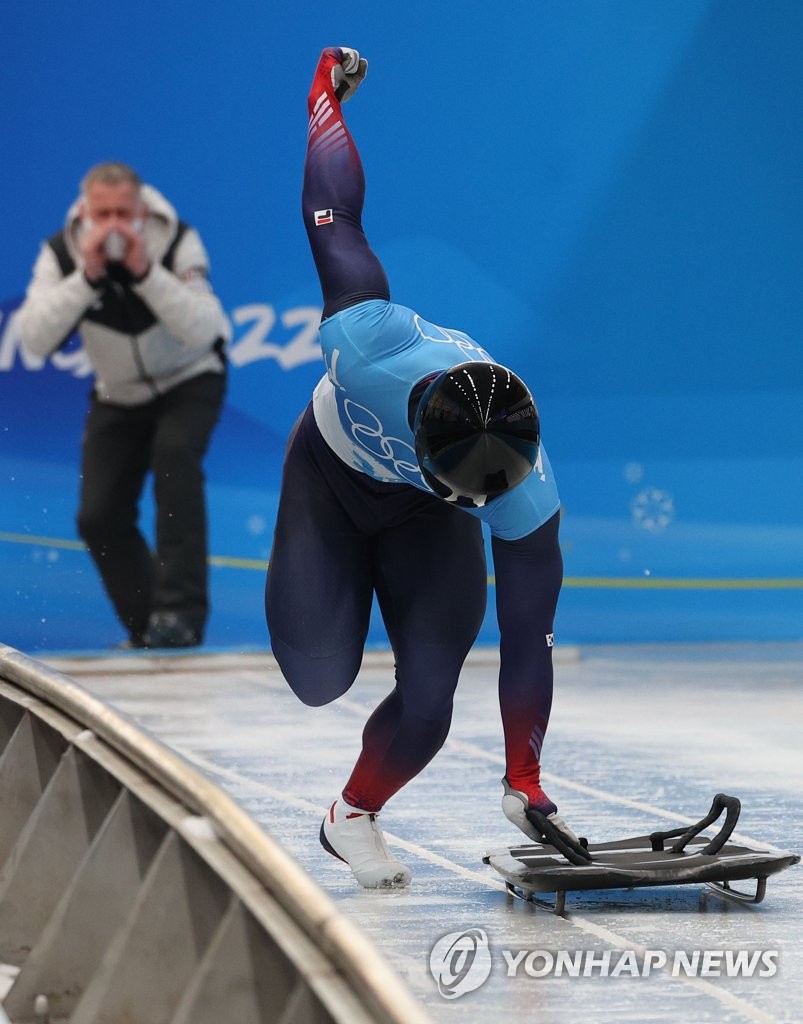 | ▲ Yun Sung-bin of South Korea competes in the men's skeleton event at the Beijing Winter Olympics at Yanqing National Sliding Centre in Yanqing District, northwest of Beijing, on Feb. 10, 2022. (Yonhap) |