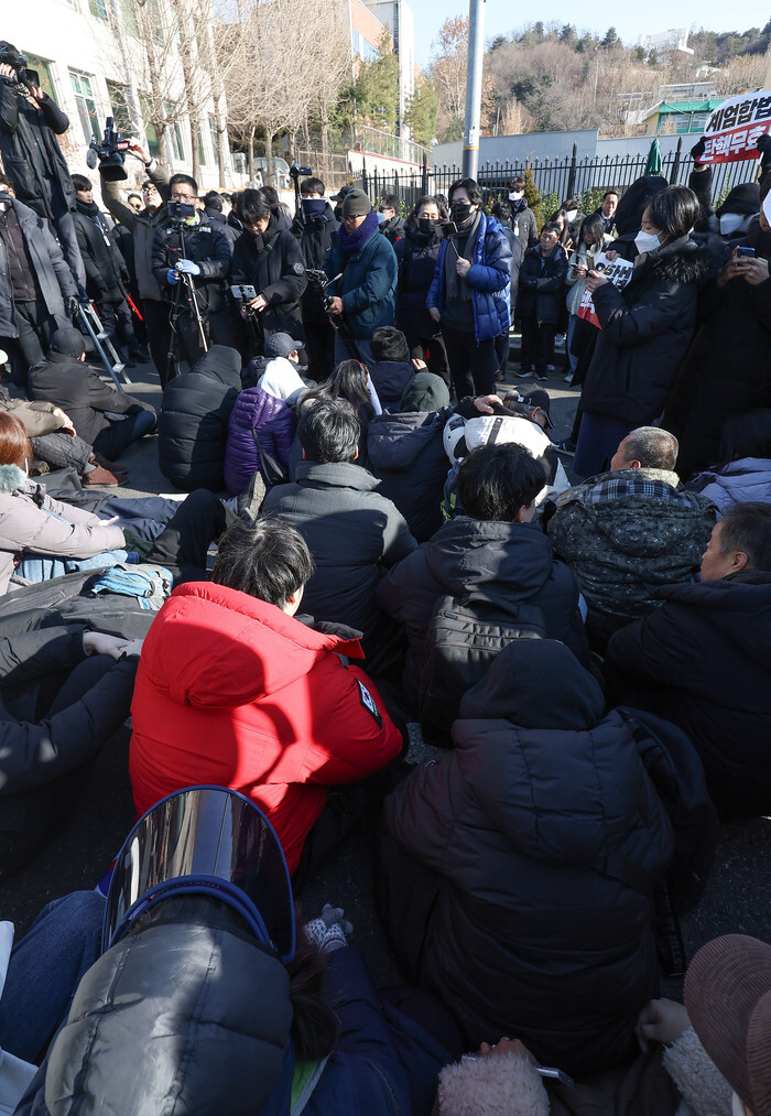 People supporting impeached President Yoon Suk Yeol gather in front of his official residence in Seoul on Jan. 2, 2025, as the state anti-corruption agency is likely to proceed with a warrant to detain Yoon as early as the same day after a Seoul court granted the warrant over his brief imposition of martial law. (Yonhap)