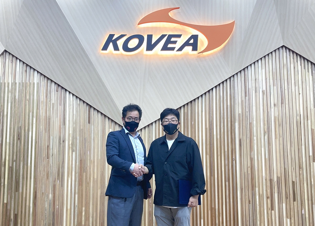 | ▲ ㈜코베아 김상현 대표(오른쪽)와 낚시하는 시민연합 김욱 대표가 지난 27일 오후 인천시 남동구 코베아 본사에서 열린 업무협약에서 악수하고 있다. [낚시하는 시민연합 제공] |