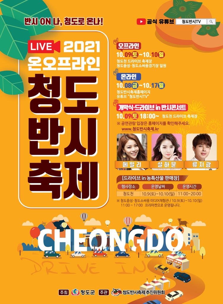 축제 프로그램 영상은 유튜브 채널(청도반시 TV)에서 실시간 시청할 수 있다.