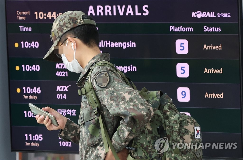| ▲ A service member walks at Seoul Station in central Seoul on April 29, 2022. (Yonhap) |