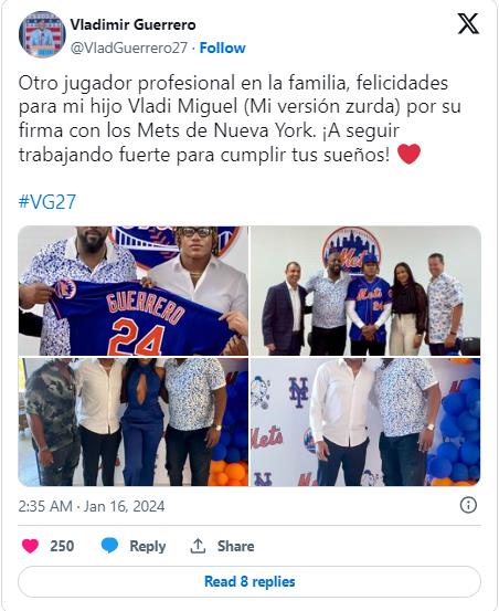 | ▲ 아들의 뉴욕 메츠 입단 소식을 알린 블라디미르 게레로 시니어의 SNS [블라디미르 게레로 시니어 SNS 캡처. 재판매 및 DB 금지] |