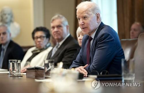| ▲ This UPI photo shows U.S. President Joe Biden holding a Cabinet meeting at the White House in Washington on March 3, 2022. (PHOTO NOT FOR SALE) (Yonhap) |