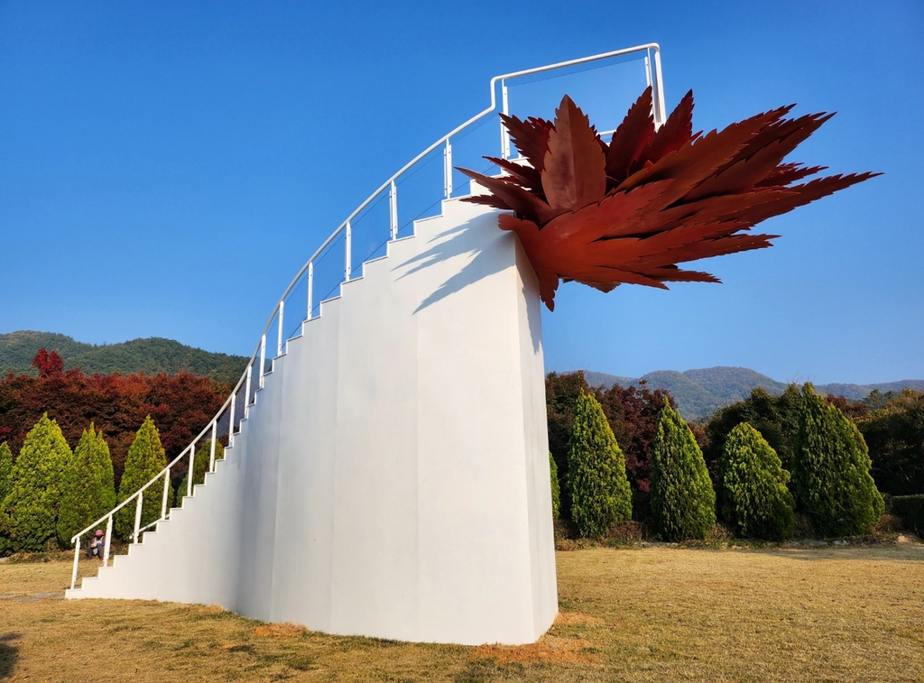 (정읍=연합뉴스) 1일 전북 정읍시 내장산 생태공원에 포토존이 설치돼 방문객들의 눈길을 사로잡고 있다.