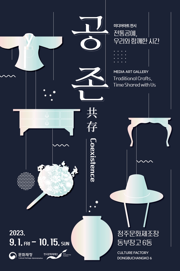 문화재청과 한국문화재재단은 다음 달 1일 충북 청주 문화제조창 동부창고 6동에서 미디어아트(매체예술) 전시 '공존(共存) : 전통공예, 우리와 함께한 시간'을 선보인다고 25일 밝혔다.