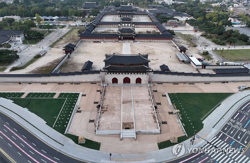 | ▲ 월대 갖춘 광화문-경복궁 (서울=연합뉴스) 류영석 기자 = 15일 복원 기념행사가 진행 중인 서울 광화문의 모습. 2023.10.15 ondol@yna.co.kr |