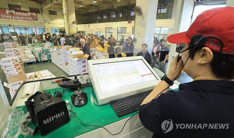 | ▲ 추석 앞두고 활기 가득한 과일 경매 현장 (제주=연합뉴스) 박지호 기자 = 추석을 앞둔 25일 오전 제주시 일도2도 제주시농협 농산물공판장에서 각종 과일에 대한 경매가 진행되고 있다. 2023.9.25 jihopark@yna.co.kr |