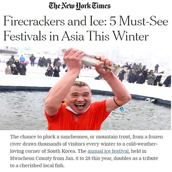 뉴욕 타임스를 비롯해 해외 유력 통신사의 기사와 사진은 축제 전부터 화천의 겨울 축제를 전 세계에 알렸다.