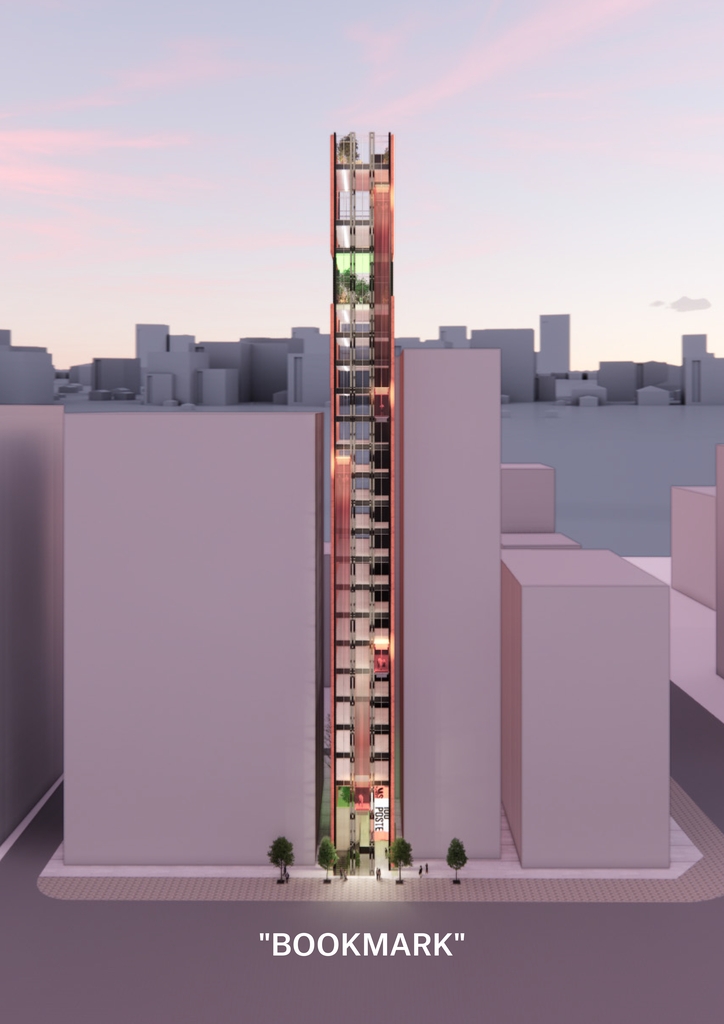 삼성동 북마크는 작은 대지에 독창적 디자인을 접목해 외부에서 옥상 공공 조망 공간까지 바로 이어지는 전망 엘리베이터와 건물을 통과하는 1층 공공 보행통로가 높은 점수를 받았다.