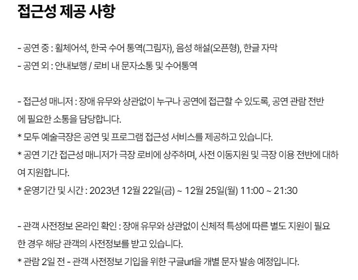 | ▲ 뮤지컬 '푸른 나비의 숲' 접근성 공지 [모두예술극장 홈페이지 캡처. 재판매 및 DB 금지] |