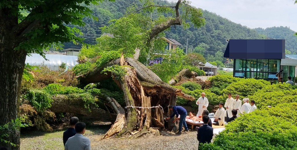 | ▲ 폭우에 쓰러진 400년 넘은 횡성 보호수 [횡성군 제공.재판매 및 DB 금지] |