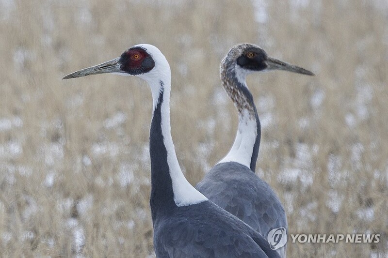 | ▲ 겨울 DMZ 찾은 두루미 (철원=연합뉴스) 임병식 기자 = 17일 강원도 철원군 비무장지대(DMZ) 인근 들판에서 천연기념물 재두루미가 먹이를 찾고 있다. 두루미는 겨울에 한반도를 찾아오는 철새로 DMZ 등에서 월동 후 몽골과 시베리아 일대로 돌아간다. 2024.1.17 andphotodo@yna.co.kr |