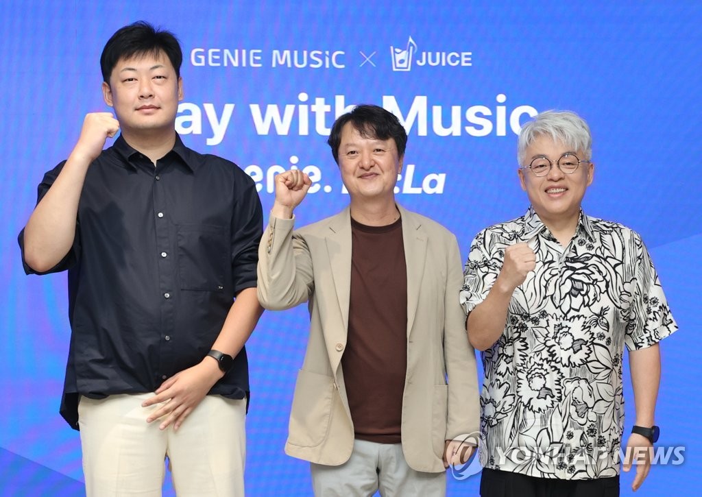The subsidiary of domestic telecom giant KT Corp. and Juice, an AI-based startup specializing in the field of music, launched a beta version of the service during a press conference at the former's headquarters in southern Seoul.