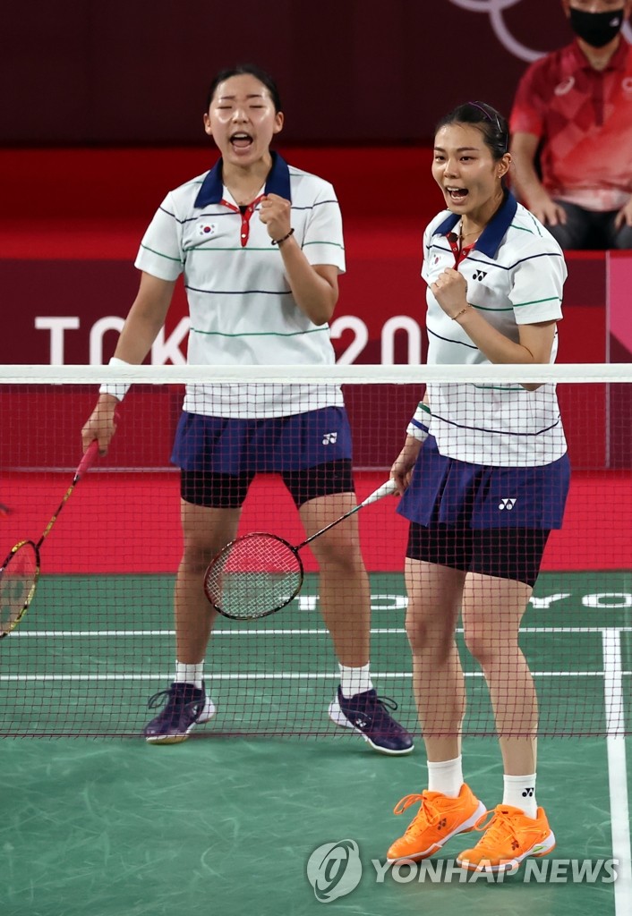 TOKYO, Aug. 2 (Yonhap) -- Kim So-yeong and Kong Hee-yong of South Korea won the bronze medal in the women's doubles badminton event at the Tokyo Olympics on Monday, thanks to a victory over their compatriots, Lee So-hee and Shin Seung-chan.