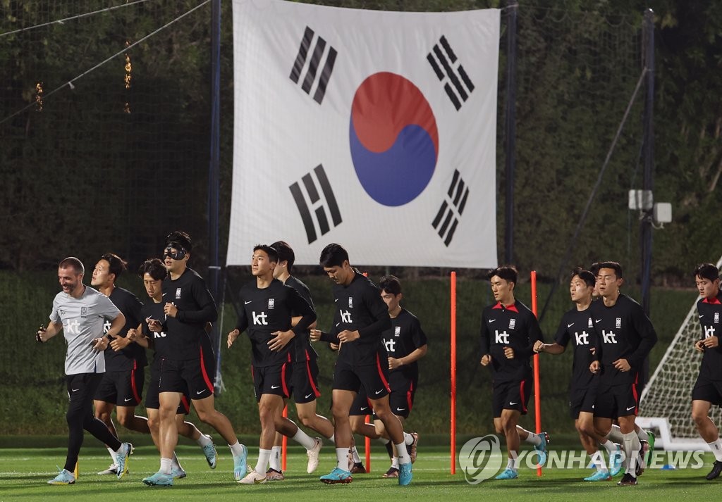 | ▲ South Korean players warm up before a training session for the FIFA World Cup at Al Egla Training Site in Doha on Nov. 19, 2022. (Yonhap) |