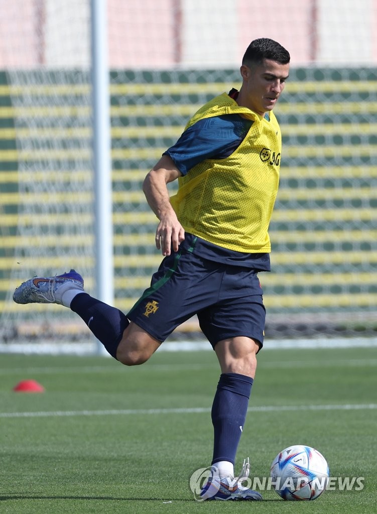 | ▲ 훈련하는 호날두 (도하=연합뉴스) 임헌정 기자 = 2022 카타르 월드컵 포르투갈 대표팀의 크리스티아누 호날두가 21일 오전(현지시간) 카타르 도하 외곽의 알샤하니야 SC 훈련장에서 훈련하고 있다. 2022.11.21 kane@yna.co.kr |