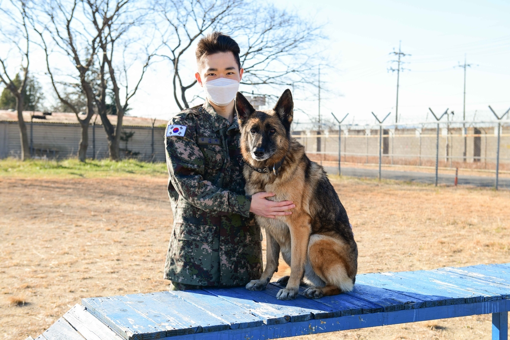 (부산=연합뉴스) 박성제 기자 = 군견을 관리해온 군인이 제대와 함께 해당 군견을 입양하기로 해 감동을 주고 있다.