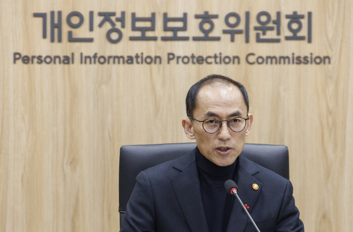 Ko Hak-soo, chairman of the Personal Information Protection Commission, speaks during a plenary session of the commission at the government complex in Seoul on Dec. 27, 2023. The minister-level government body is tasked with formulating and supervising policies aimed at protecting personal information. (Yonhap)