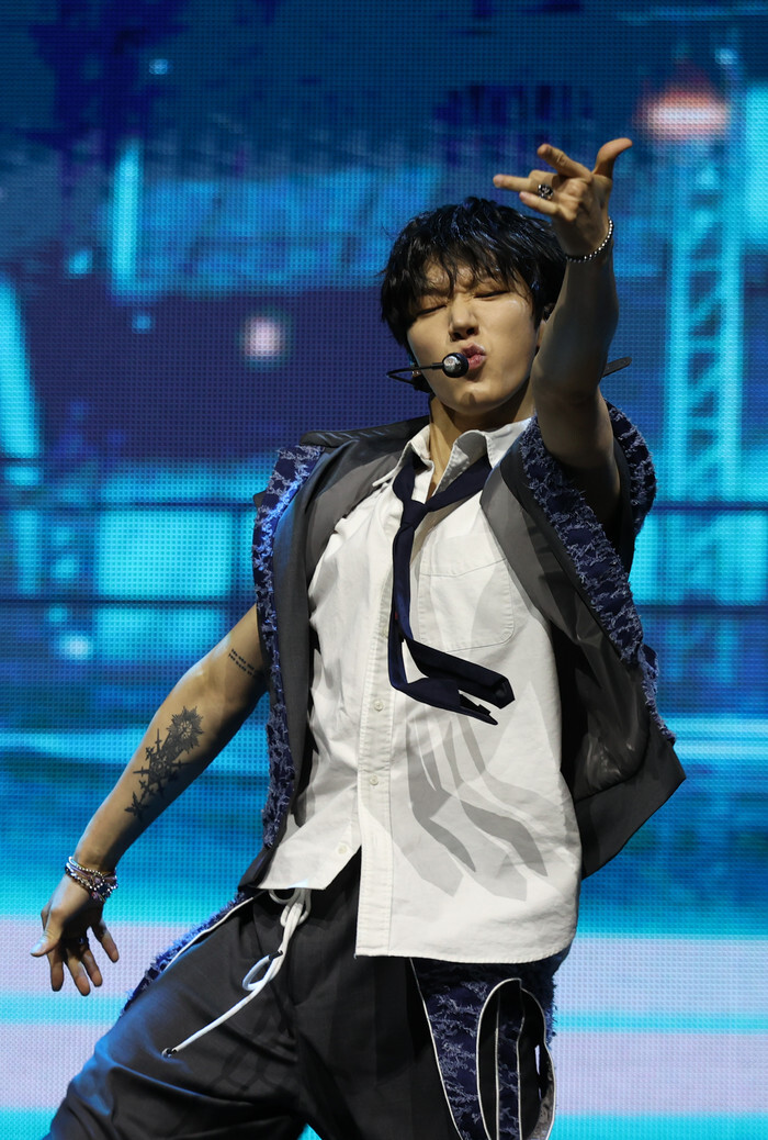 Ten, a member of Chineses boy group Ten, performs during a showcase for the group's fifth mini album "Give Me That" in Seoul on June 3, 2024. (Yonhap)