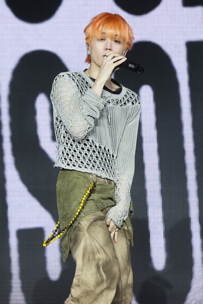 Riwoo, a member of South Korean boy group BoyNextDoor, performs during a showcase for the group's fifth mini album "The Action" in Seoul on Oct. 20, 2025. (Yonhap)