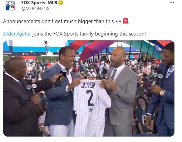 폭스 스포츠는 미국 프로스포츠 최대 축제인 미국프로풋볼(NFL) 슈퍼볼이 진행 중이던 미국 애리조나주 글렌데일 스테이트팜 스타디움의 야외 행사장에서 지터의 해설진 합류를 깜짝 발표했다.