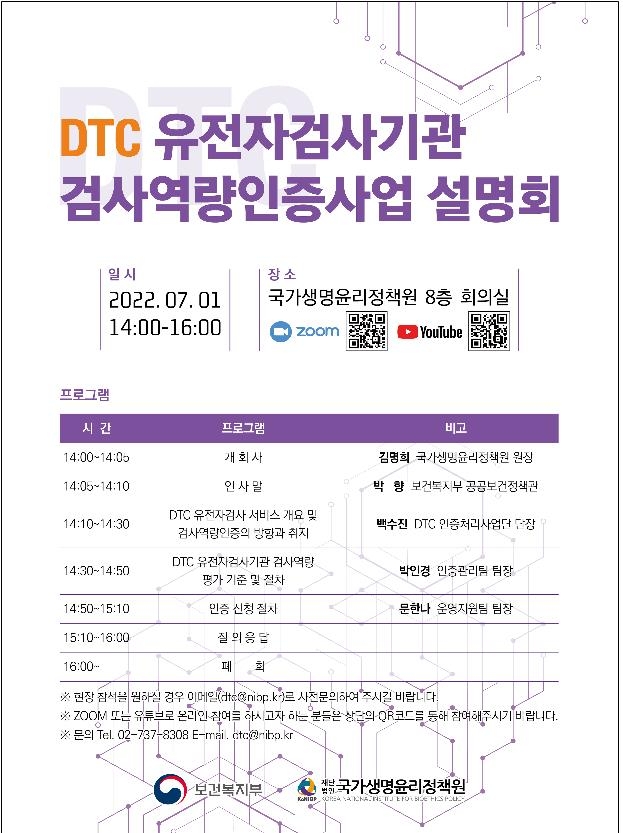 보건복지부와 국가생명윤리정책원은 1일 '소비자 직접 의뢰(DTC, Direct To Consumer) 유전자 검사역량 인증제'를 도입한다고 밝혔다.