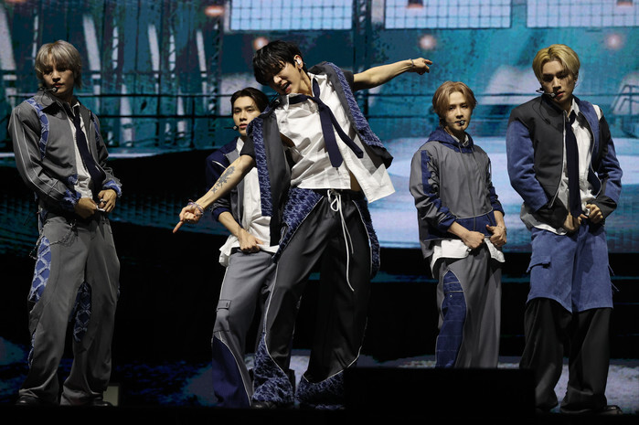 Chineses boy group WayV poses for a photo during a showcase for the group's fifth mini album "Give Me That" in Seoul on June 3, 2024. (Yonhap)