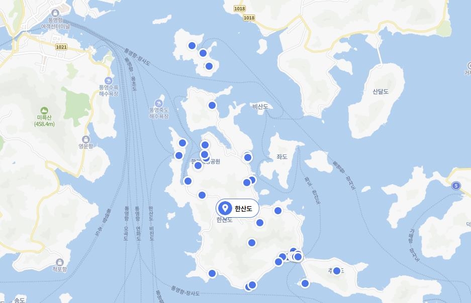 | ▲ 통영항 여객선터미널과 한산도 [네이버 지도. 재판매 및 DB 금지] |