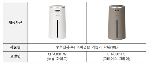 (서울=연합뉴스) 오지은 기자 = 한국소비자원과 국가기술표준원은 쿠쿠전자 아이편한 가습기 타워(10L) 진동자에 변색이 생기고 공급수가 혼탁해지는 등 위해 우려가 있어 전 제품 진동자를 교체하는 자발적 제품 수거(리콜)를 한다고 31일 밝혔다.