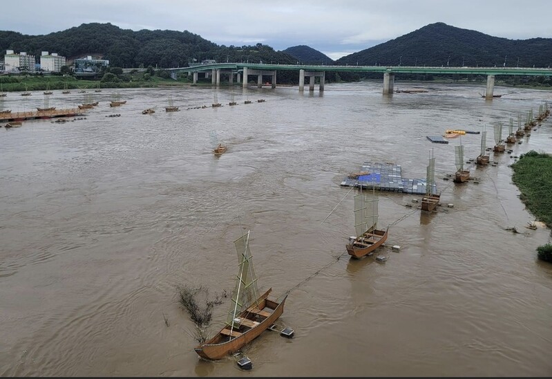 | ▲ 폭우로 침수된 대백제전 일부 시설물 [김권한 공주시의원 사회관계망서비스 갈무리. 재판매 및 DB 금지] |