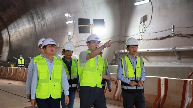 2일 삼성전자에 따르면 이 회장은 지난 1일(이하 현지시간) 사우디 서북부 타북주에서 삼성물산이 참여하는 친환경 스마트시티 네옴(NEOM) 산악터널 공사 현장을 점검했다.