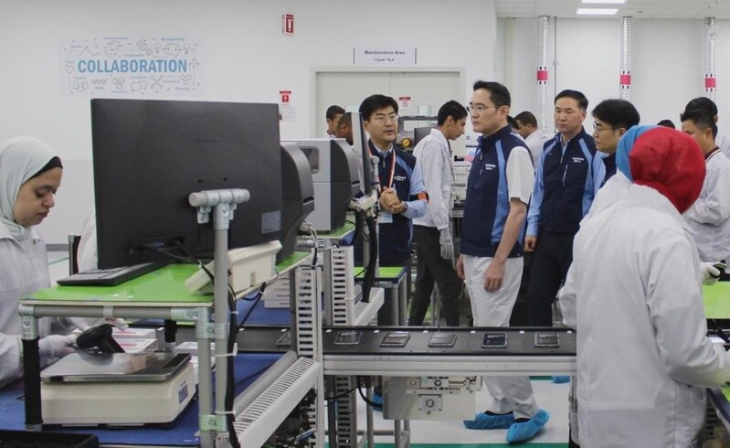 | ▲ 삼성전자 이집트 공장 방문한 이재용 삼성전자 회장 (서울=연합뉴스) 이재용 삼성전자 회장이 1일(현지시간) 이집트 중부 베니수에프주(州)에 위치한 삼성전자 TV·모바일 공장을 찾아 가동 현황을 점검하고 있다. 이 회장은 추석 연휴인 지난 달 28일부터 이날까지 사우디아라비아와 이스라엘·이집트를 찾아 현지 사업장에서 근무 중인 임직원들을 격려하고 사업 확대 방안을 논의했다. 2023.10.2 [삼성전자 제공. 재판매 및 DB 금지] |