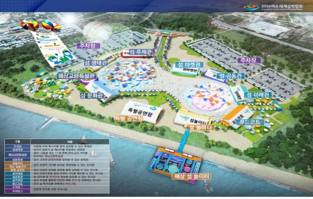 여수섬박람회는 2026년 7월 17일부터 한 달간 여수 진모지구, 금오도 등 도서 지역에서 개최된다.