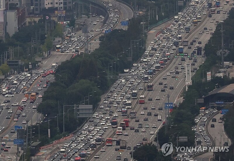한국도로공사에 따르면 이날 오후 1시 기준 승용차로 서울 요금소를 출발해 전국 주요 도시까지 걸리는 예상 시간은 부산 8시간 10분, 울산 7시간, 대구 6시간 20분, 광주 5시간 50분, 강릉 4시간 20분, 대전 3시간 50분이다.