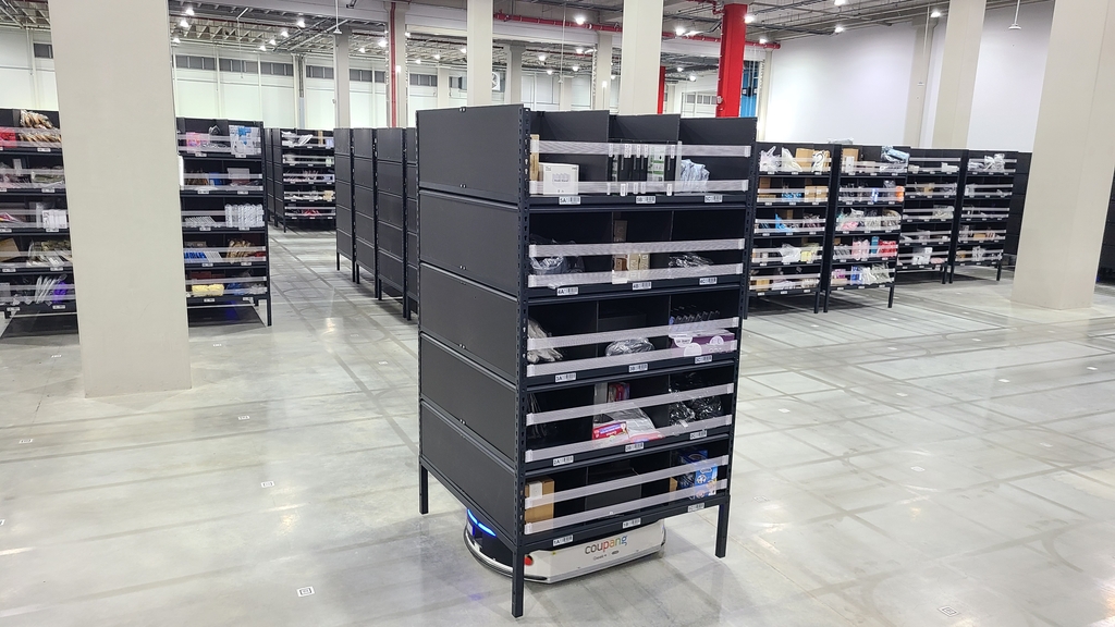 | ▲ An Automated Guidance Vehicle moves a shelf stocked with inventory at Coupang Inc.'s fulfillment center in Daegu, 237 kilometers south of Seoul, on Feb. 3, 2023. (Yonhap) |