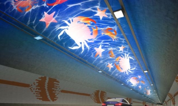 대전국토청은 해저터널의 특징을 살리고 안전운전을 돕기 위해 터널 내 6개 구간 총 1천400m에 바닷속 수족관, 해양생물, 서해안의 낙조, 보령머드축제 등을 감각적으로 표현한 경관조명을 설치했다.