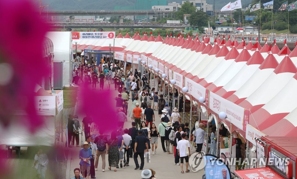| ▲ 강릉단오제 즐겨요 (강릉=연합뉴스) 유형재 기자 = 18일 개막한 천년 축제이자 유네스코 인류무형문화유산인 강릉단오제가 열리고 있는 강릉시 남대천 단오장 일원에 무더운 날씨에도 많은 인파가 찾아 축제를 즐기고 있다. 2023.6.18 yoo21@yna.co.kr |