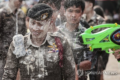 | ▲ 방콕 거리에서 물총 세례 맞은 태국 경찰 [AP 연합뉴스 자료사진. 재판매 및 DB 금지] |