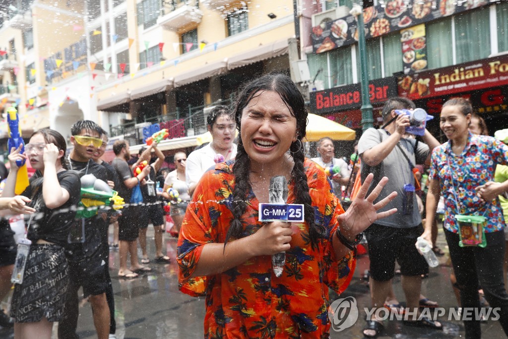 | ▲ 송끄란 물축제 보도 중 물총 맞는 태국 기자 [EPA 연합뉴스 자료사진. 재판매 및 DB 금지] |