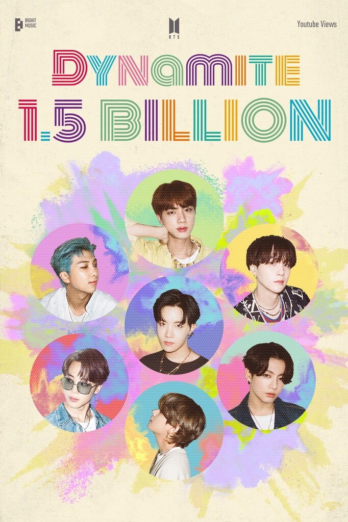 | ▲ This image, provided by Big Hit Music on June 17, 2022, celebrates 1.5 billion YouTube views for the music video for BTS' "Dynamite." (PHOTO NOT FOR SALE) (Yonhap) |